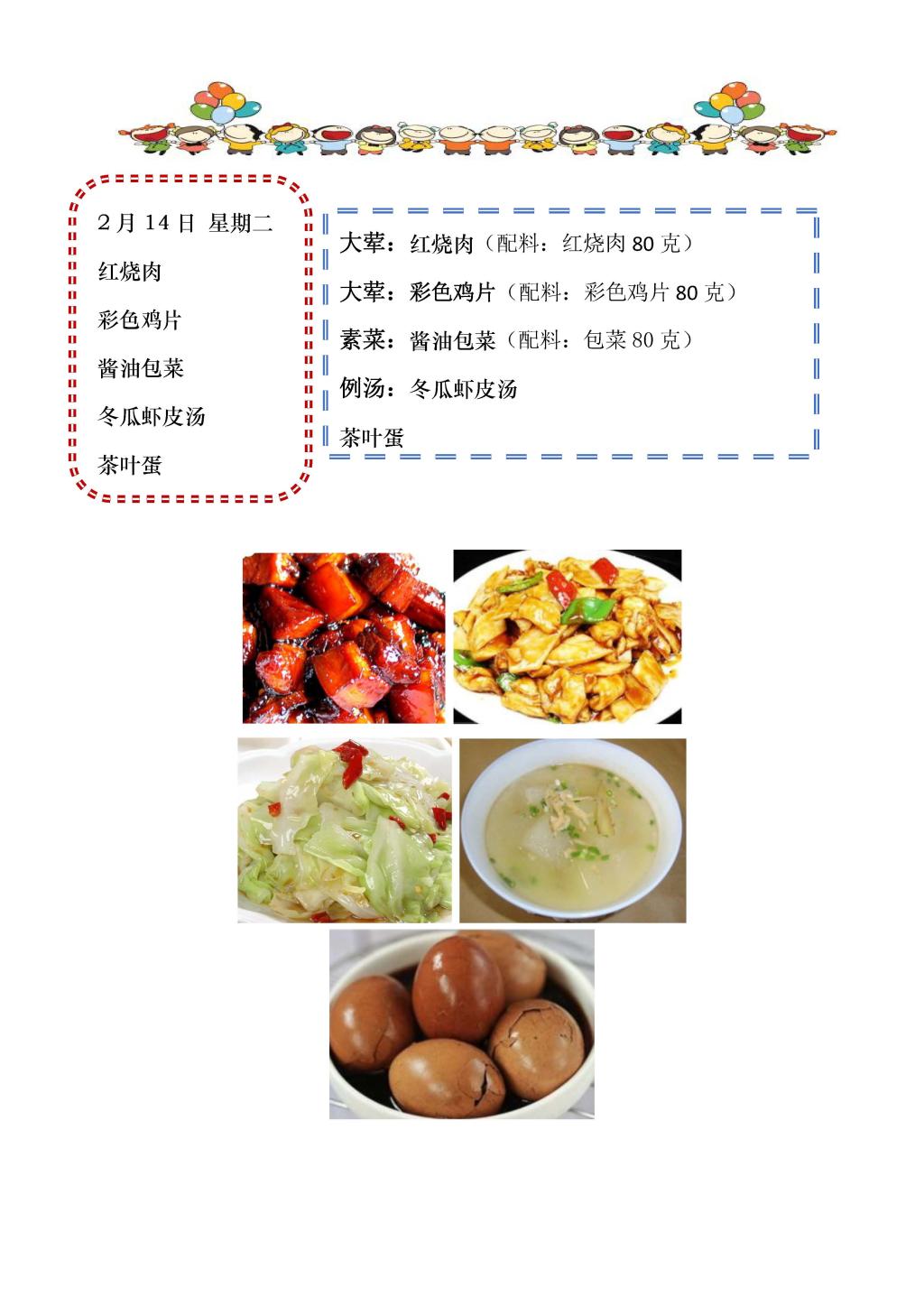 学校2022~2023学年度第二学期第2周菜单