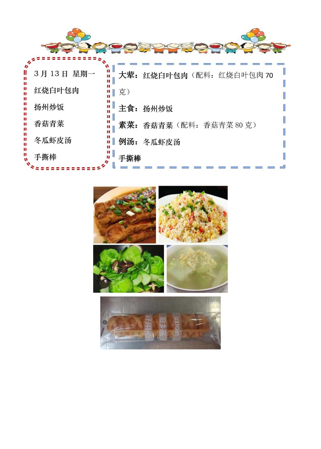 学校2022~2023学年度第二学期第6周菜单
