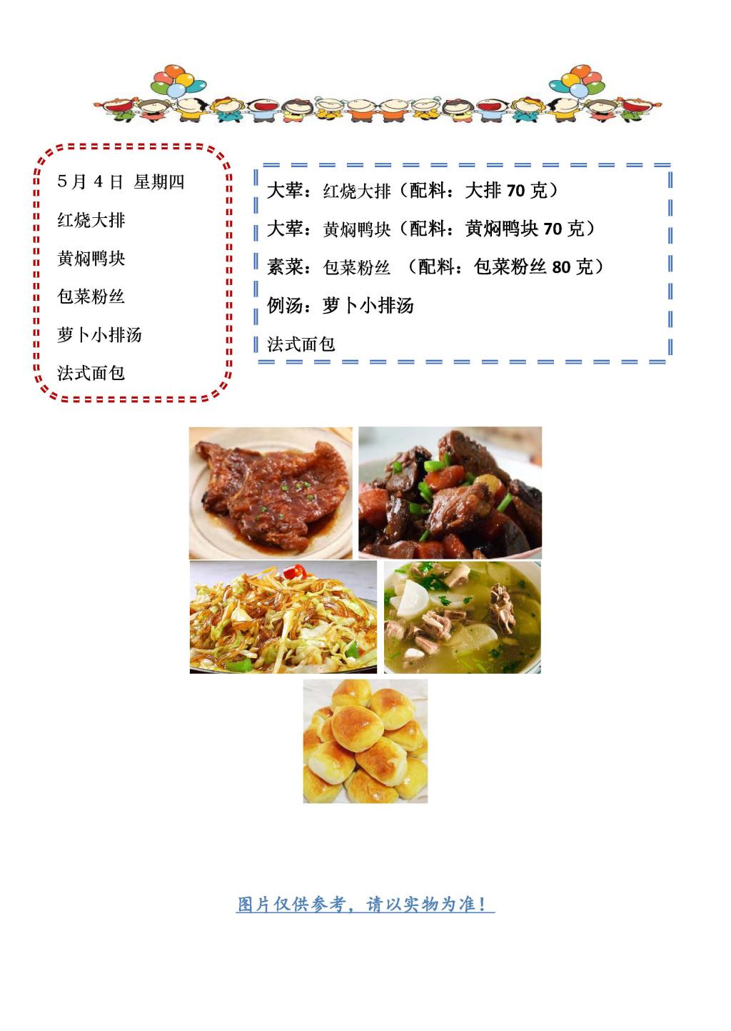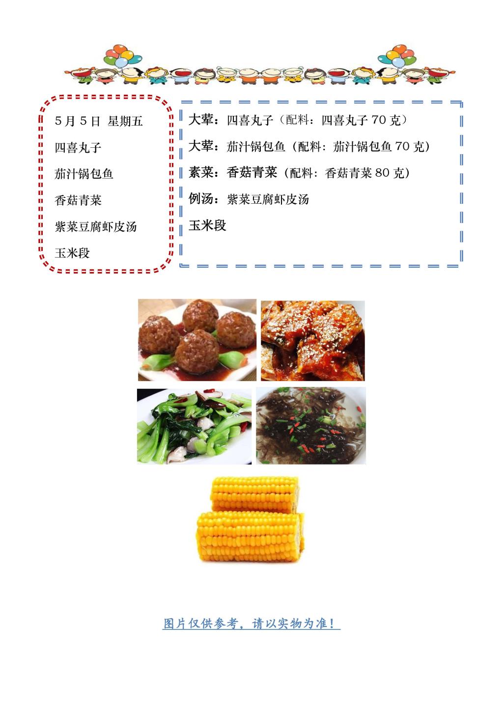 学校2022~2023学年度第二学期第12周菜单