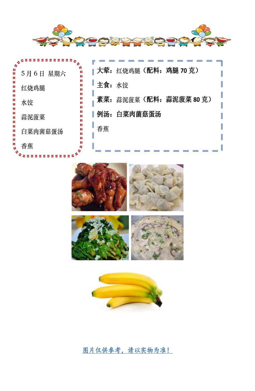 学校2022~2023学年度第二学期第13周菜单
