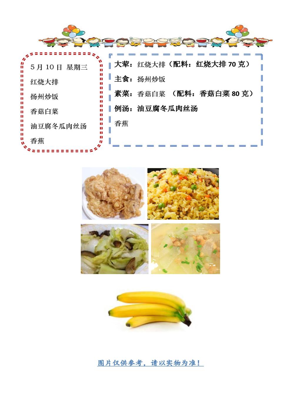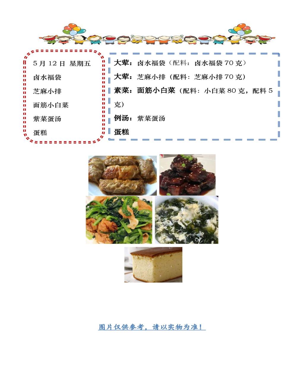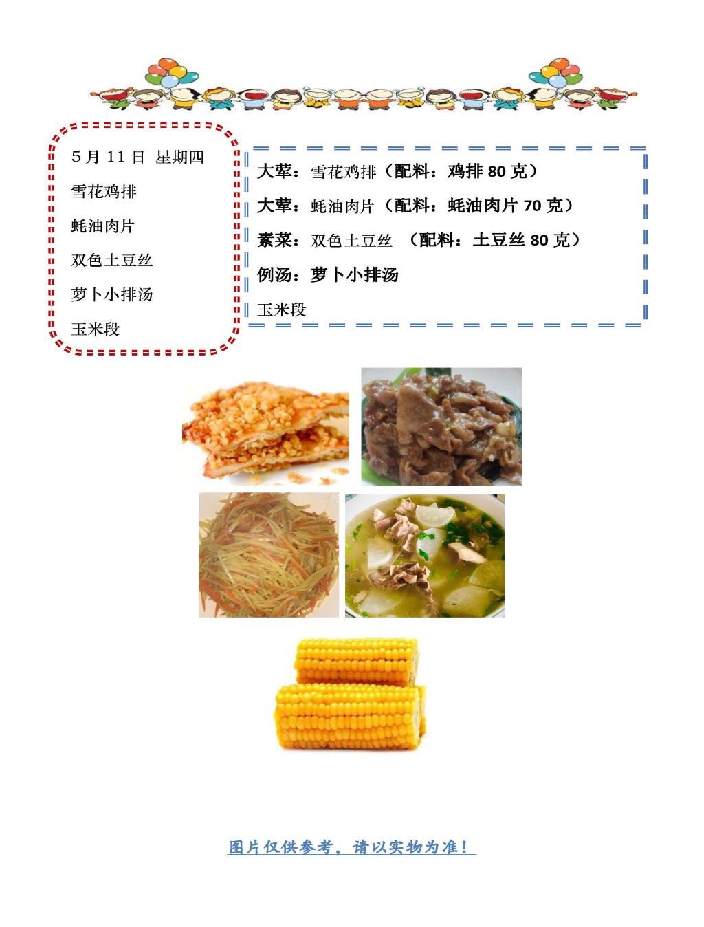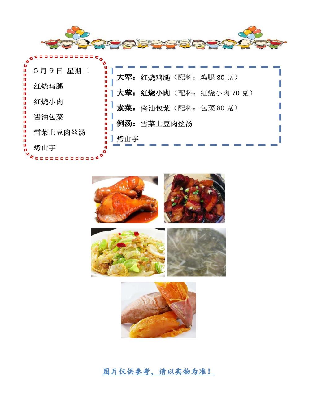 学校2022~2023学年度第二学期第13周菜单