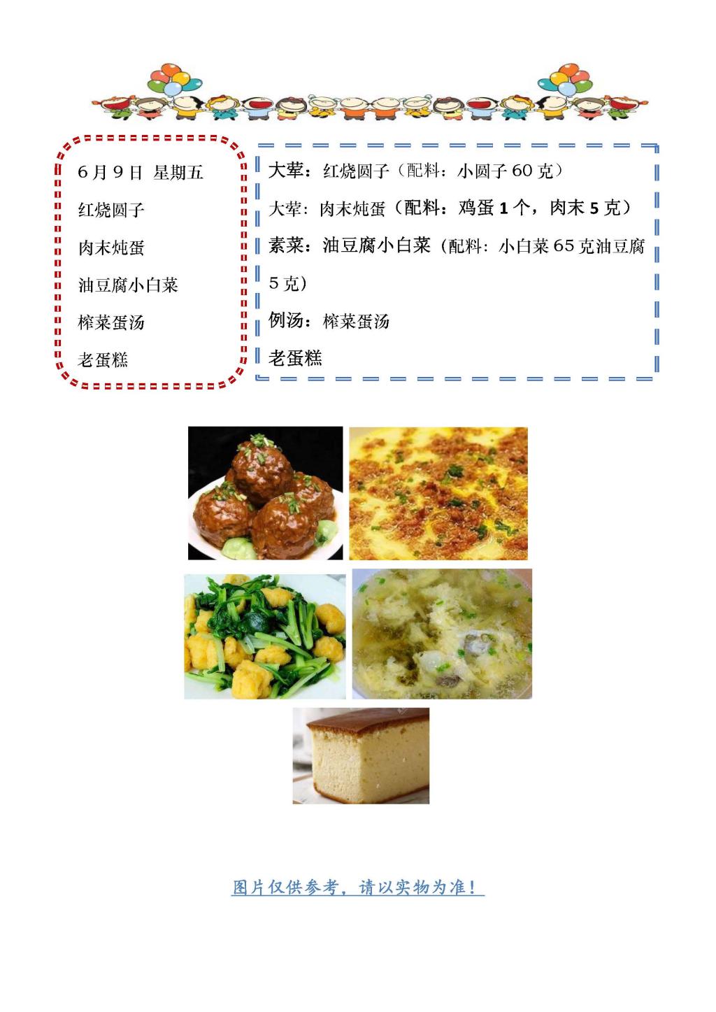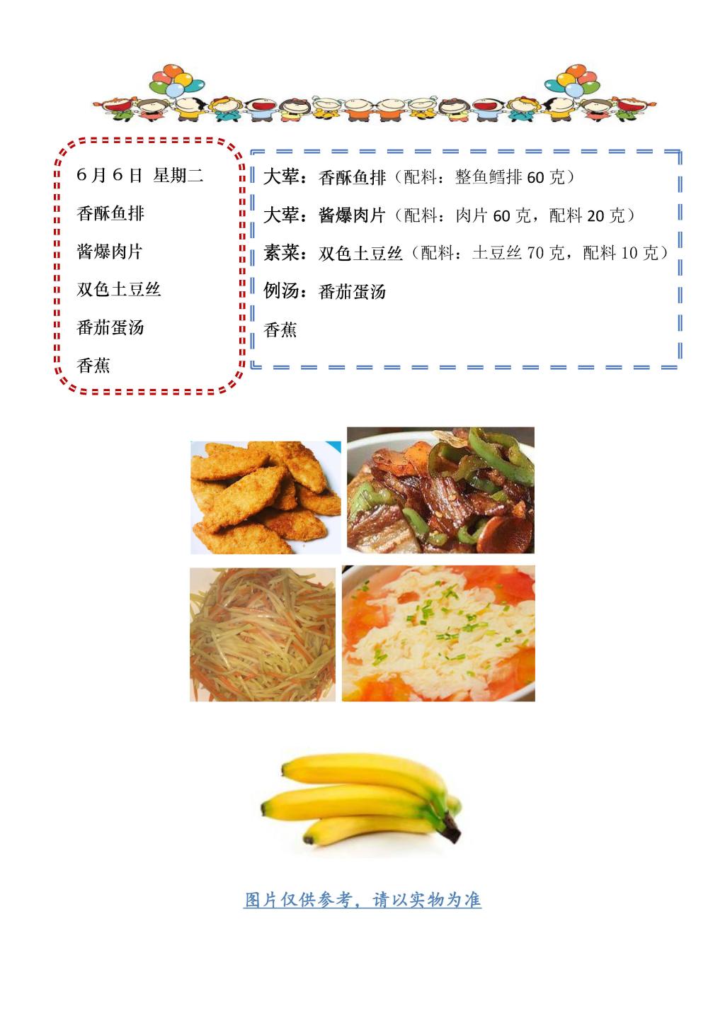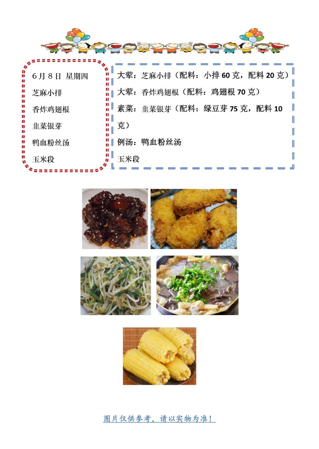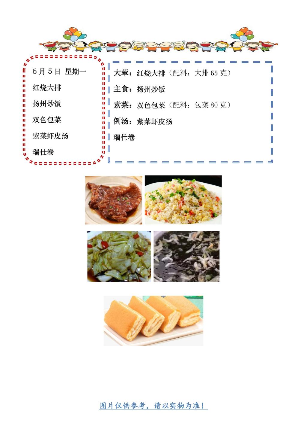 学校2022~2023学年度第二学期第18周菜单