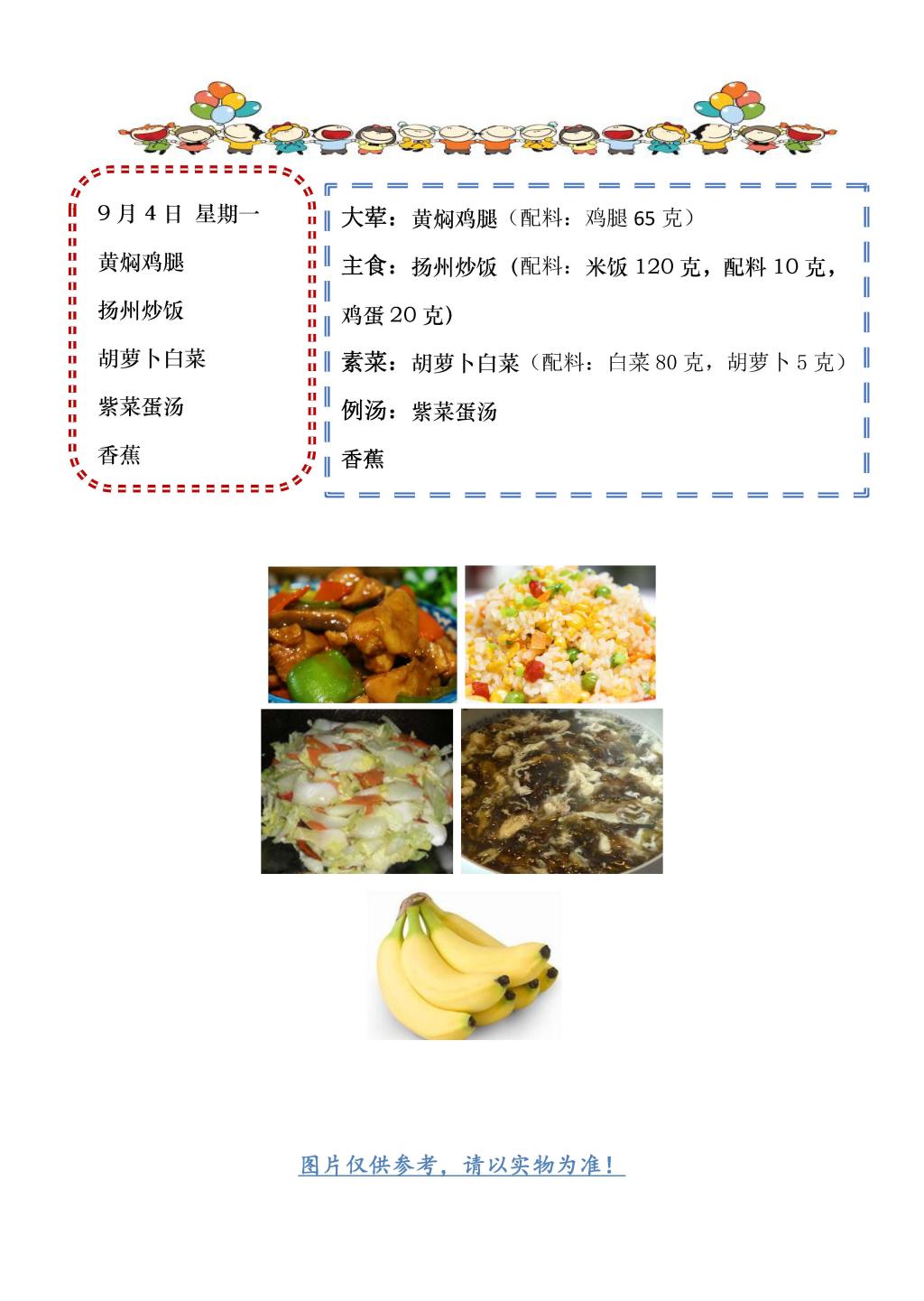 学校2023~2024学年度第一学期第1周菜单