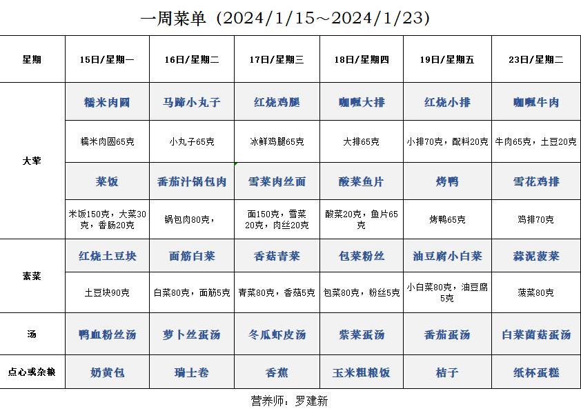 一周菜单(2024/1/15~2024/1/23)
