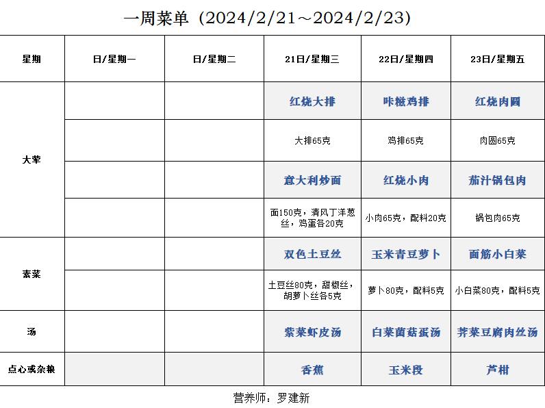 一周菜单(2024/2/21~2024/2/23)