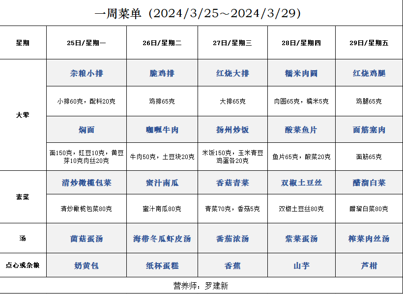 一周菜单(2024/3/25~2024/3/29)