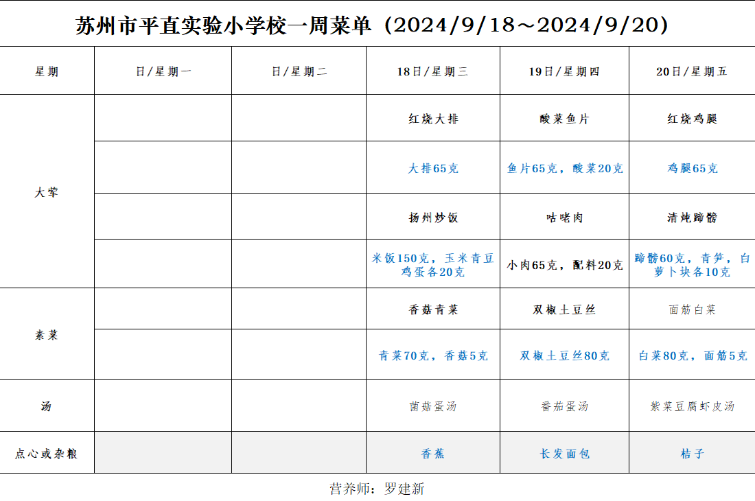 一周菜单(2024/9/18~2024/9/20)