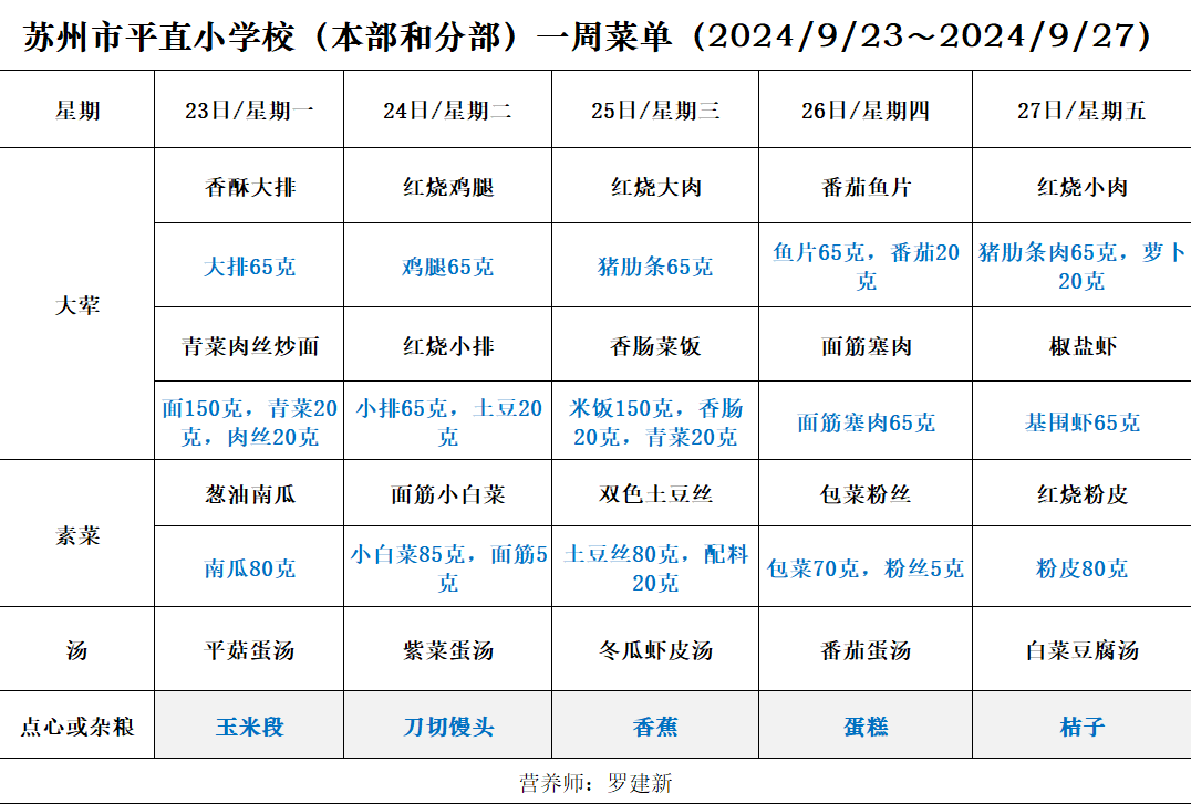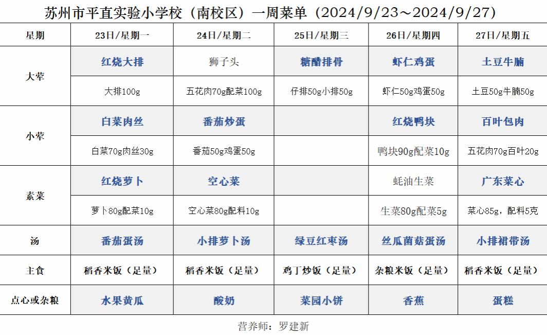 一周菜单(2024/9/23~2024/9/27)