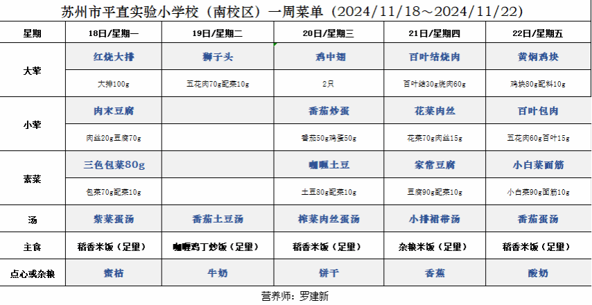 一周菜单(2024/11/18~2024/11/22)