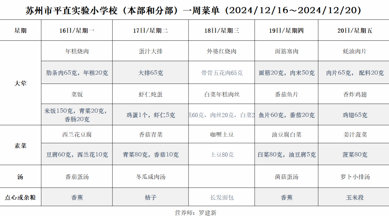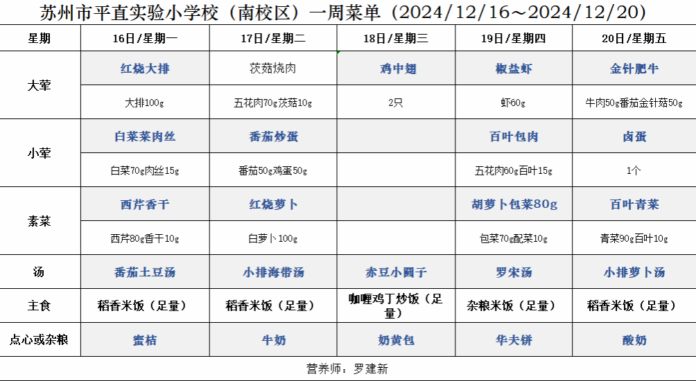 一周菜单(2024/12/16~2024/12/20)