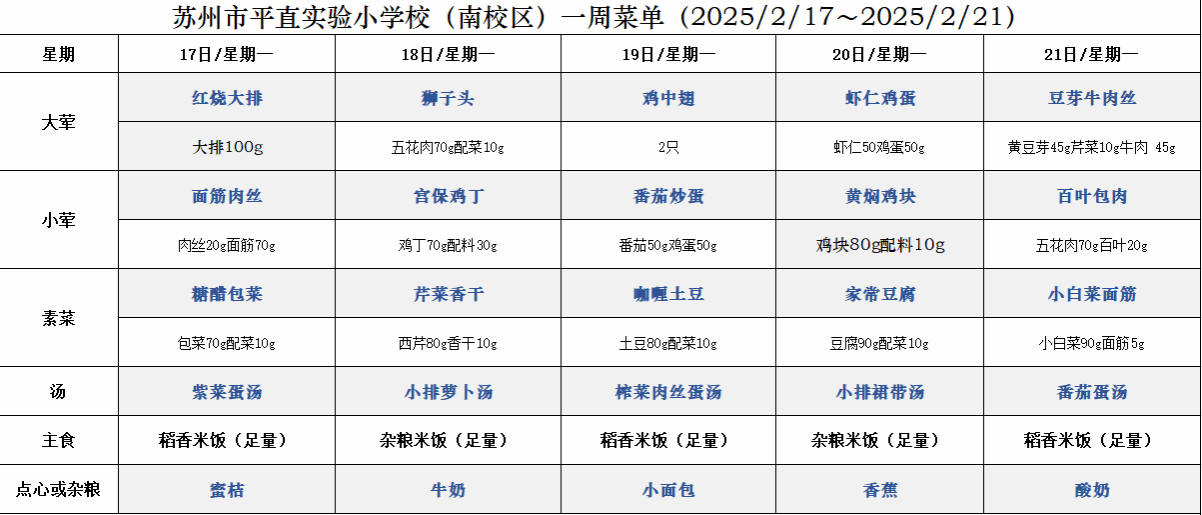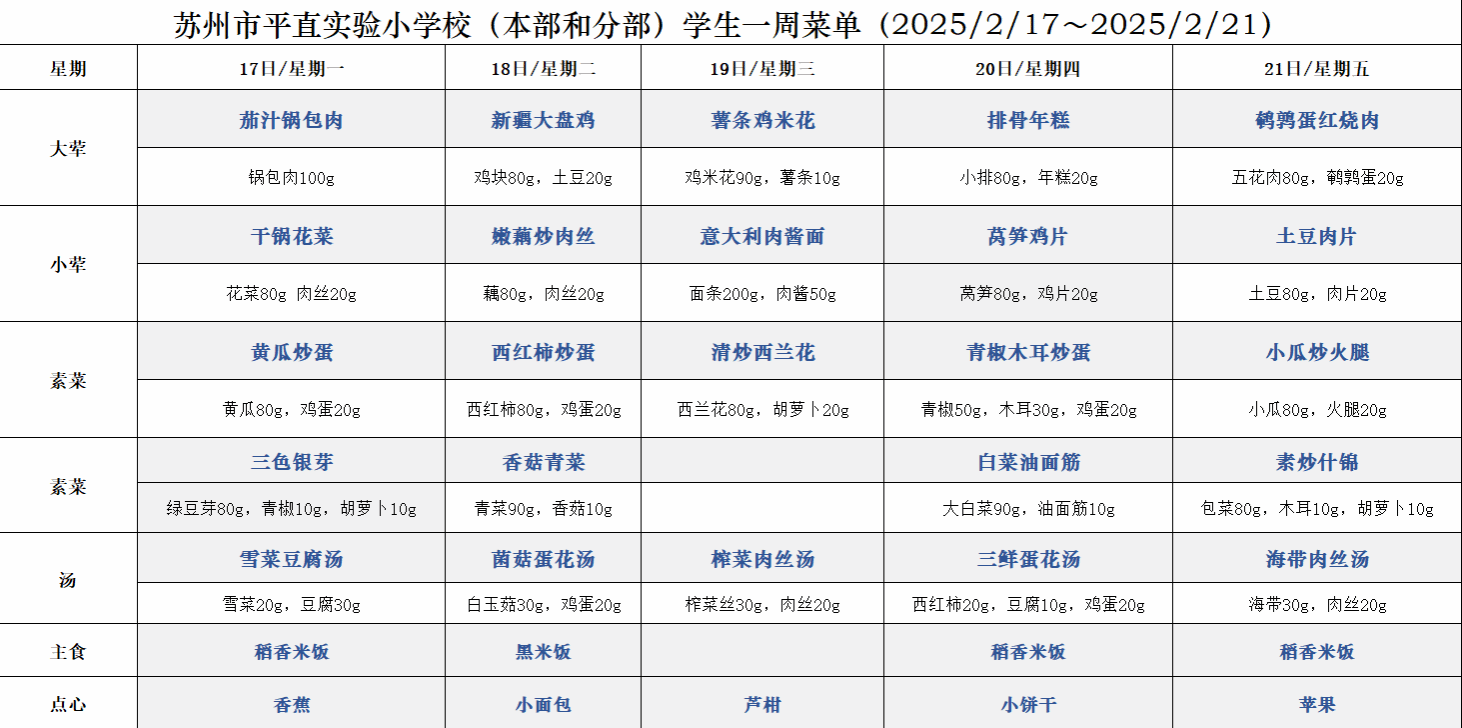 一周菜单(2025/2/17~2025/2/21)