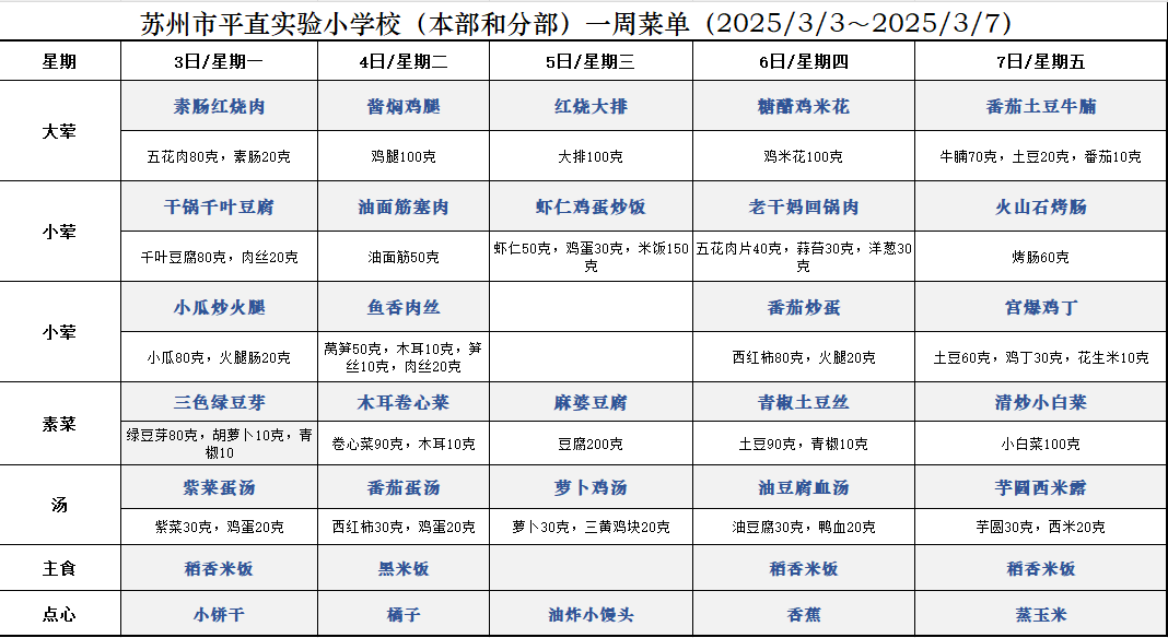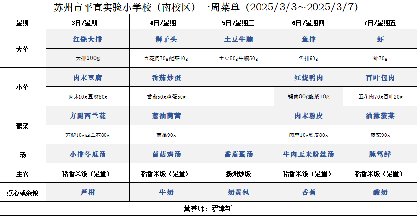 一周菜单(2025/3/3~2025/3/7)