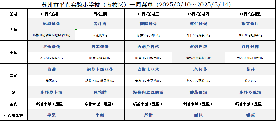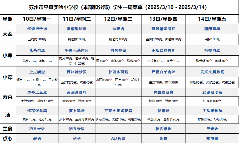 一周菜单(2025/3/10~2025/3/14)