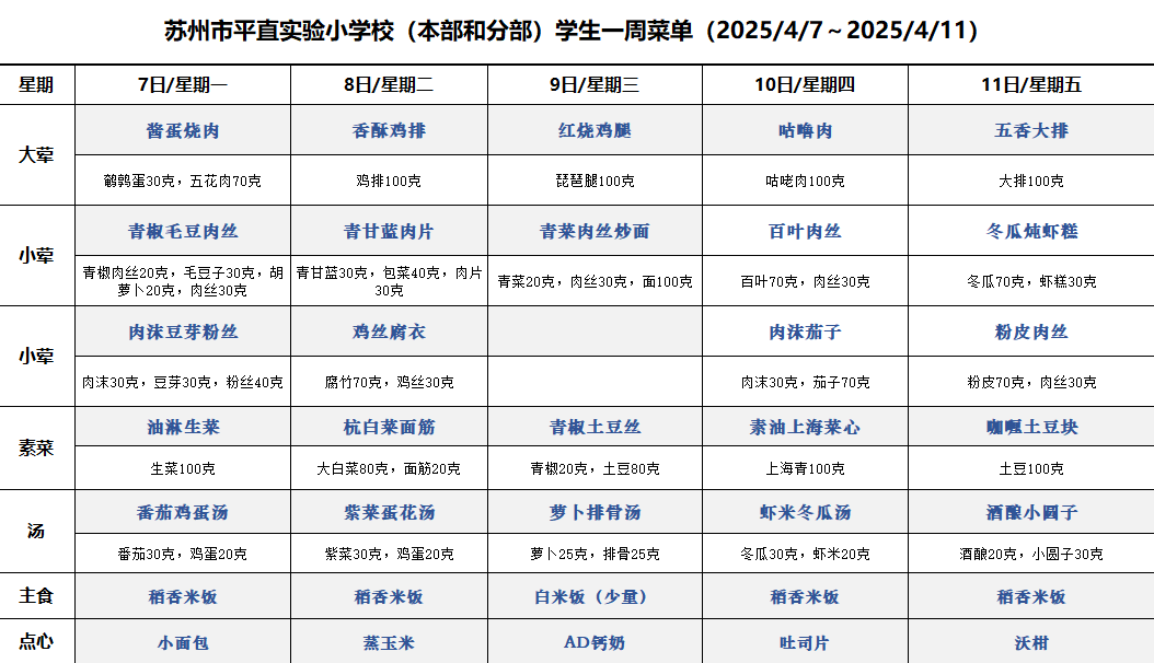 一周菜单(2025/4/7~2025/4/11)