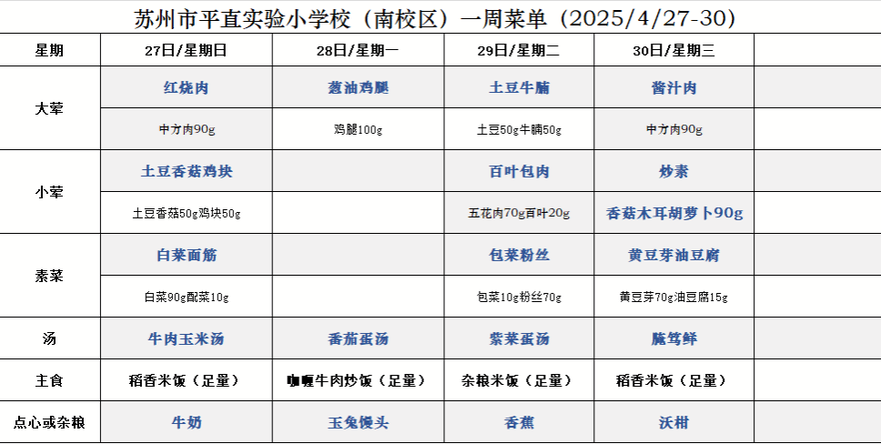 一周菜单(2025/4/27~2025/4/30)