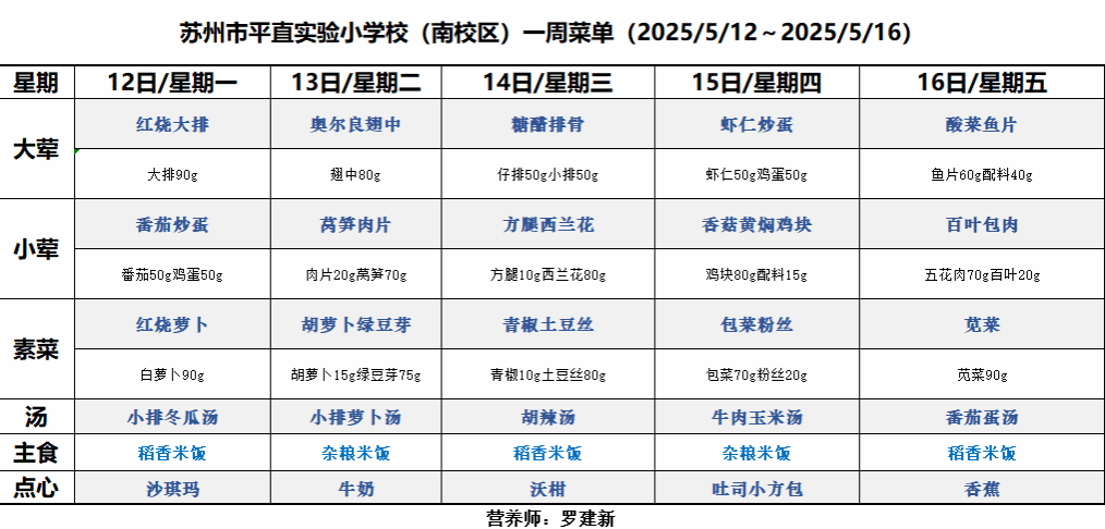 一周菜单(2025/5/12~2025/5/16)