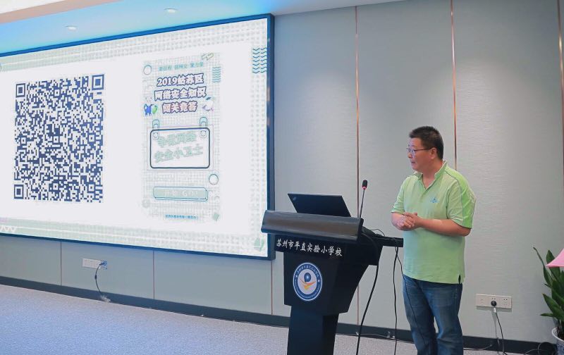 • 启动仪式后,江苏百达智慧网络科技有限公司黄老师给学生执教专题课,分享更多的网络安全知识。同时,姑苏公安分局网络警察大队的程苏宁警官为全区教育系统各学校、幼儿园的网络安全管理员进行网络安全的相关技能知识培训。姑苏区教育体育和文化旅游委员会办公室孙义发和姑苏区教师发展中心信息部王润清就下阶段区教育系统网络安全工作做工作部署。
