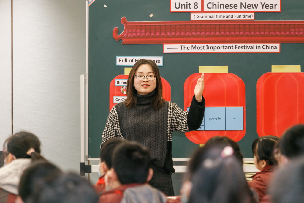吴中区郭巷实验小学凌梅芳老师执教《6A Unit8 Chinese New Year》。凌梅芳老师以生动活泼的Chant导入,通过三个节日计划,将课本内容有机整合,引导学生一步步学习并领略语法的乐趣。