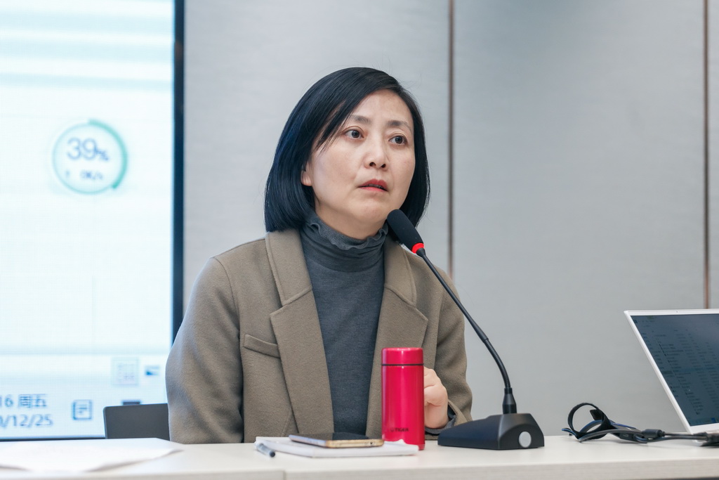 首先,执教老师和大家分享了教学设计、教学思路,同时,结合课堂反馈进行了教学反思。然后各市专家进行点评。常熟市教研室潘志琴老师认为,6位老师呈现了课堂的可能性,无论是内容结构还是情境思维,设计都自然灵动,给大家带来了耳目一新的感觉。太仓市教师发展中心戴燕老师认为,上课教师在课堂上展现了有意义的语境与多样的活动,促使学生进行自主学习并积极地运用语言,课堂精彩纷呈。昆山市玉峰实验学校沈舒老师认为,6位教师的课是基于主题的场景串联,是基于话题语言的融合,更是始于学生认识视角的变化。最后,市教科院袁峥老师进行总结点评。袁峥老师认为,6位老师的课,聚焦语用,关注语境,让孩子在自然而然的过程中习得语法,希望老师们能牢记语法教学的理念,让语法教学活起来。