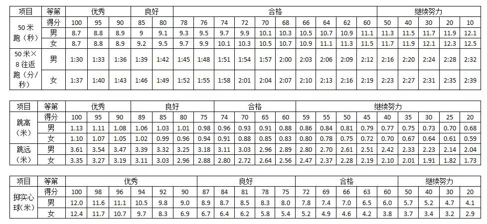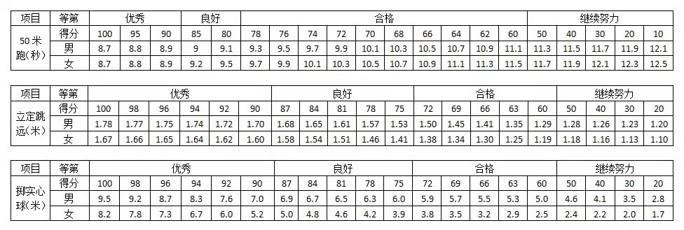 家长可以根据项目及标准,督促孩子平日加强练习,