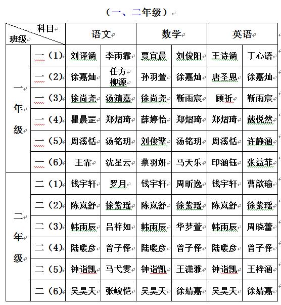 经老师推荐,学校教导处审核,下列同学获得2018-2019学年度第二学期语数英学科期末考试免试资格。如有疑问请联系班主任。