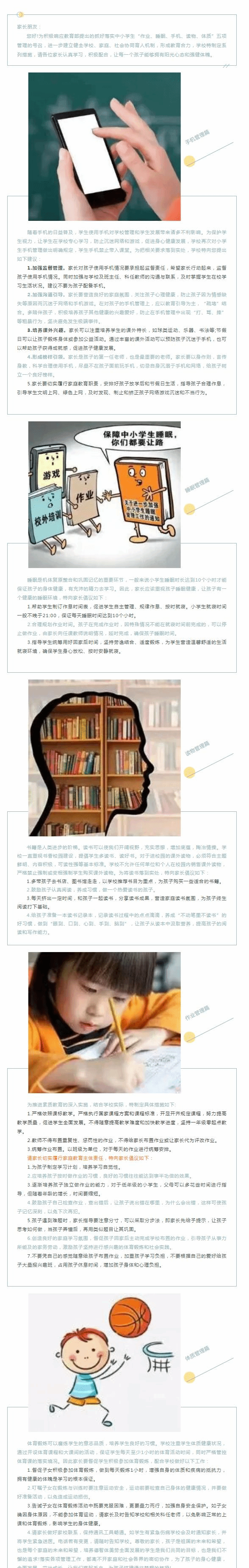 落实“五项管理”工作致家长的一封信