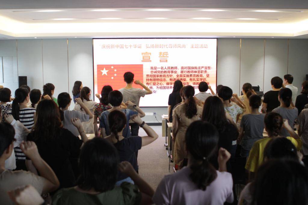 学校还举行了教师宣誓仪式。仪式上,教师们精神饱满,右手握拳举于耳侧,在领誓人方蕾老师的带领下面对国旗庄严宣誓。“做学生良师益友,铸教师高尚人格。为祖国培养优秀人才,为教育事业奋斗终身!”誓词铮铮,字字落地,每位教师的心中油然而生一种强烈的荣誉感、自豪感、责任感和使命感。这种神圣与震撼,凝聚为一句话,铭刻在老师们心中,那就是——作为教师,我们,对于学生很重要!