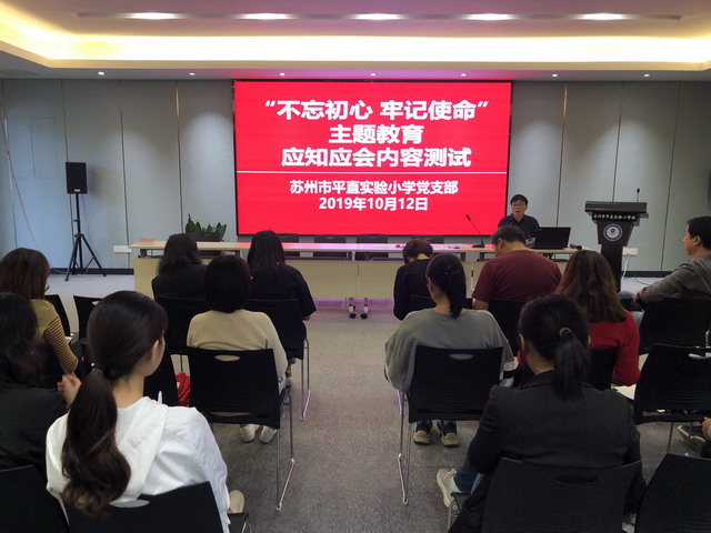 为开展好“不忘初心、牢记使命”主题教育工作,推动主题教育高质量高标准开展,2019年10月12日下午,苏州市平直实验小学党支部组织全体党员开展“不忘初心、牢记使命”主题教育应知应会内容测试,对学校党员开展主题教育以来的实施成果进行检验。