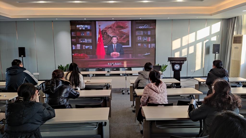 随后,全体党员还回顾聆听了习近平总书记《二〇二一年新年贺词》。“每个人都了不起!”贺词中,习近平总书记热情为伟大人民点赞、向平凡英雄致敬,引起了大家的广泛共鸣。党员们从讲话中汲取了力量,鼓足了脚踏实地加油干的劲头,纷纷表示将按照习主席讲话精神和要求,继续奋斗,勇往直前,在2021年做好各项工作,推动学校各项事业高质量发展, 以优异的成绩迎接中国共产党百年华诞。
