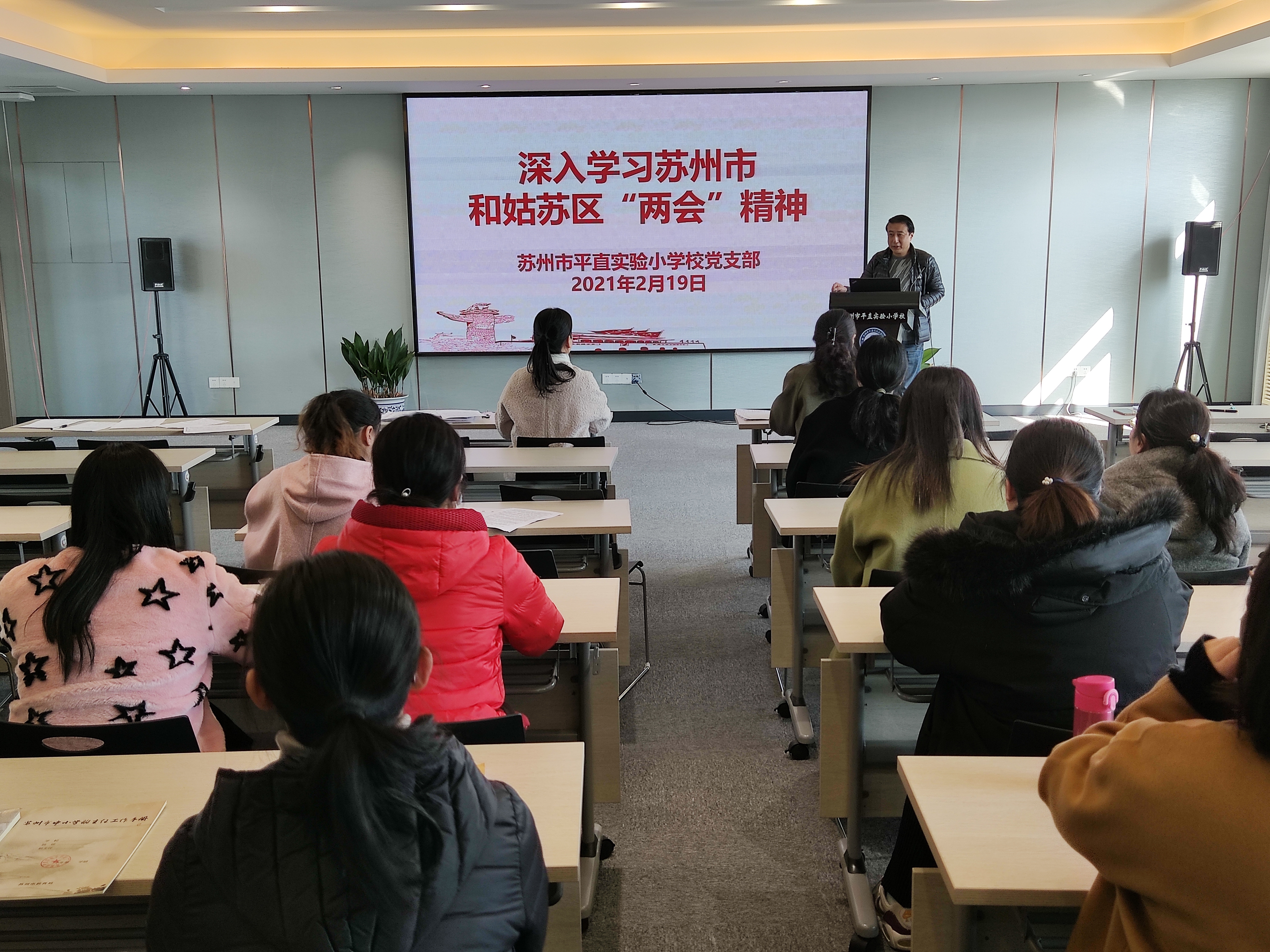 会上,董晨书记带领全体党员重点解读了苏州市2021年政府工作报告,并号召全体党员要深入学习、坚决贯彻党的十九届五中全会精神,准确把握新发展阶段,深入贯彻新发展理念,特别是要对照苏州市“十四五”规划和加快建设展示“强富美高”新图景的社会主义现代化强市的定位目标,坚持以习近平新时代中国特色社会主义思想为指导,围绕苏州市和姑苏区“两会”精神,以实际行动推动学校事业高质量发展,以优异成绩迎接中国共产党成立100周年。