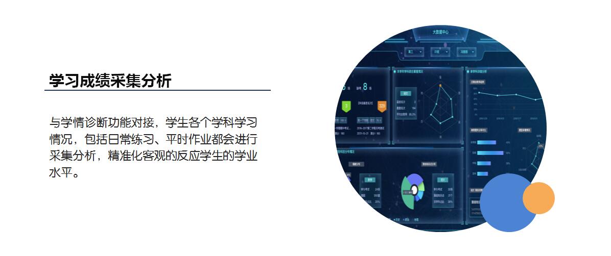 2.学习成绩采集分析。与学情诊断功能对接,学生各个学科学习情况,包括日常练习、平时作业都会进行采集分析,精准化客观的反应学生的学业水平。