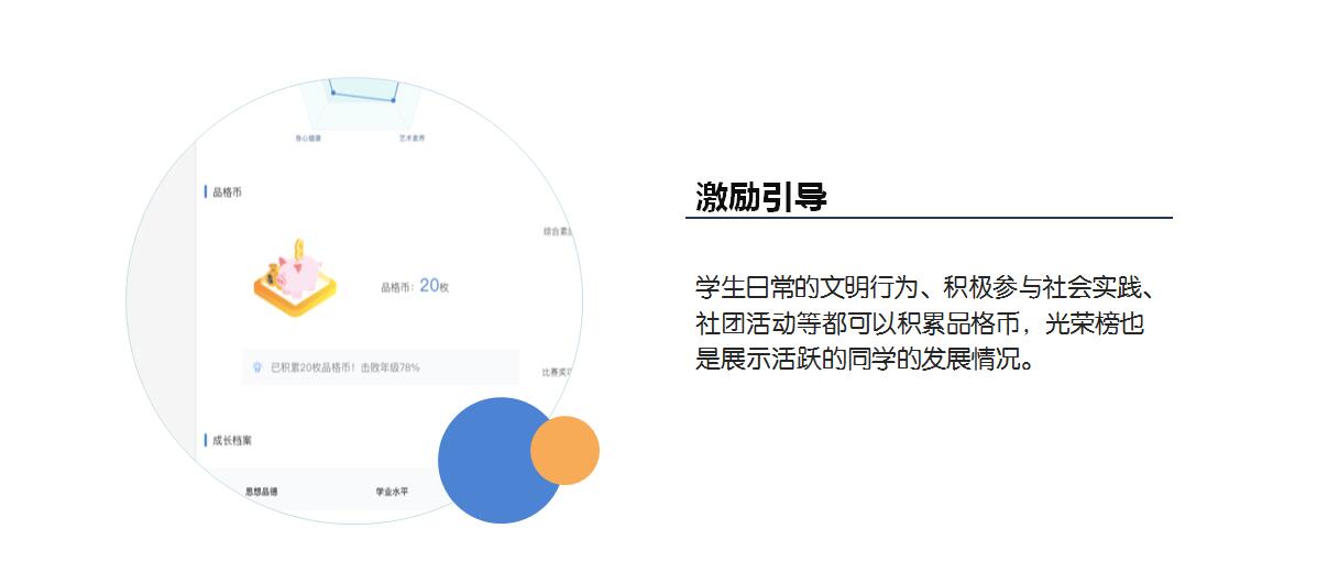1.激励引导。学生日常的文明行为、积极参与社会实践、社团活动等都可以积累品格币,光荣榜也是展示活跃的同学的发展情况。