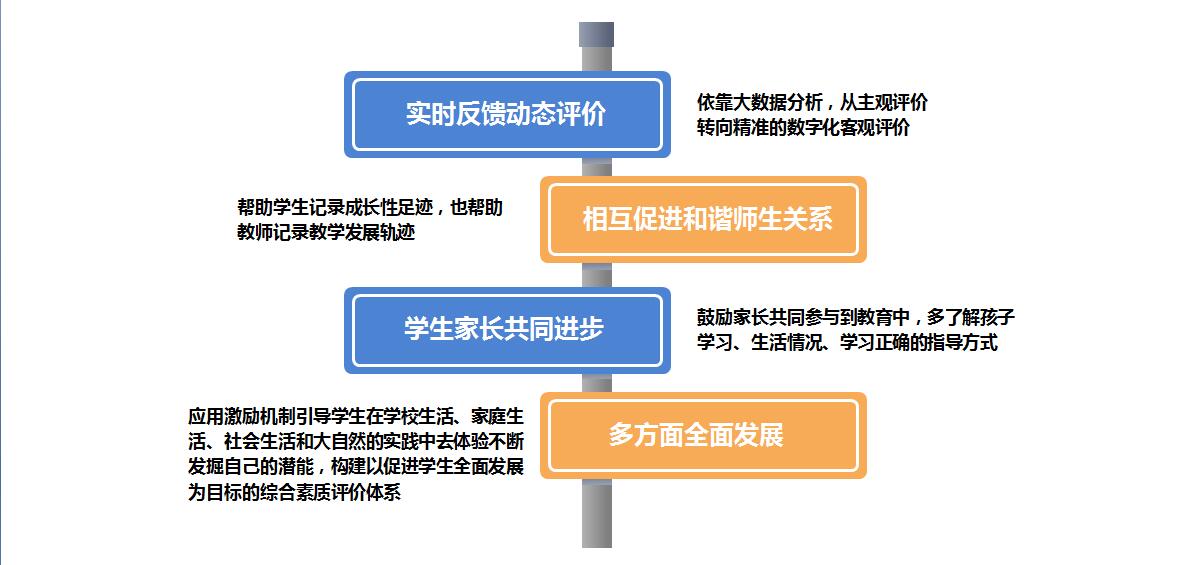 所有数据记录均具有写实性、客观性、过程性,注重以学生行为为依据,注重学生成长的过程性与发展性,注重参与主体、评价体系、结果呈现和发展趋向的多元性,注重从数据中挖掘学生未来发展的潜能和倾向,为学生健康和全面发展创造条件。
